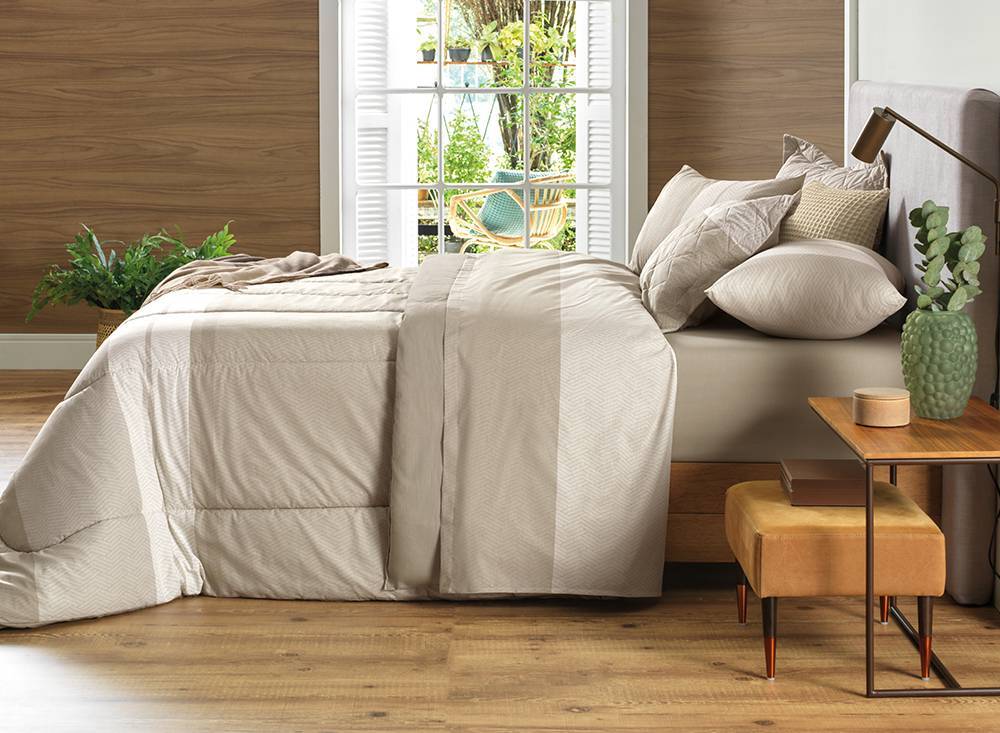 O Cobre Leito Levi traz uma linda geometria em cores neutras, deixando seu quarto moderno e sutil. Possui confecção em 100% Algodão 150 Fios, conferindo toque macio e uma ótima noite de sono com muita maciez.