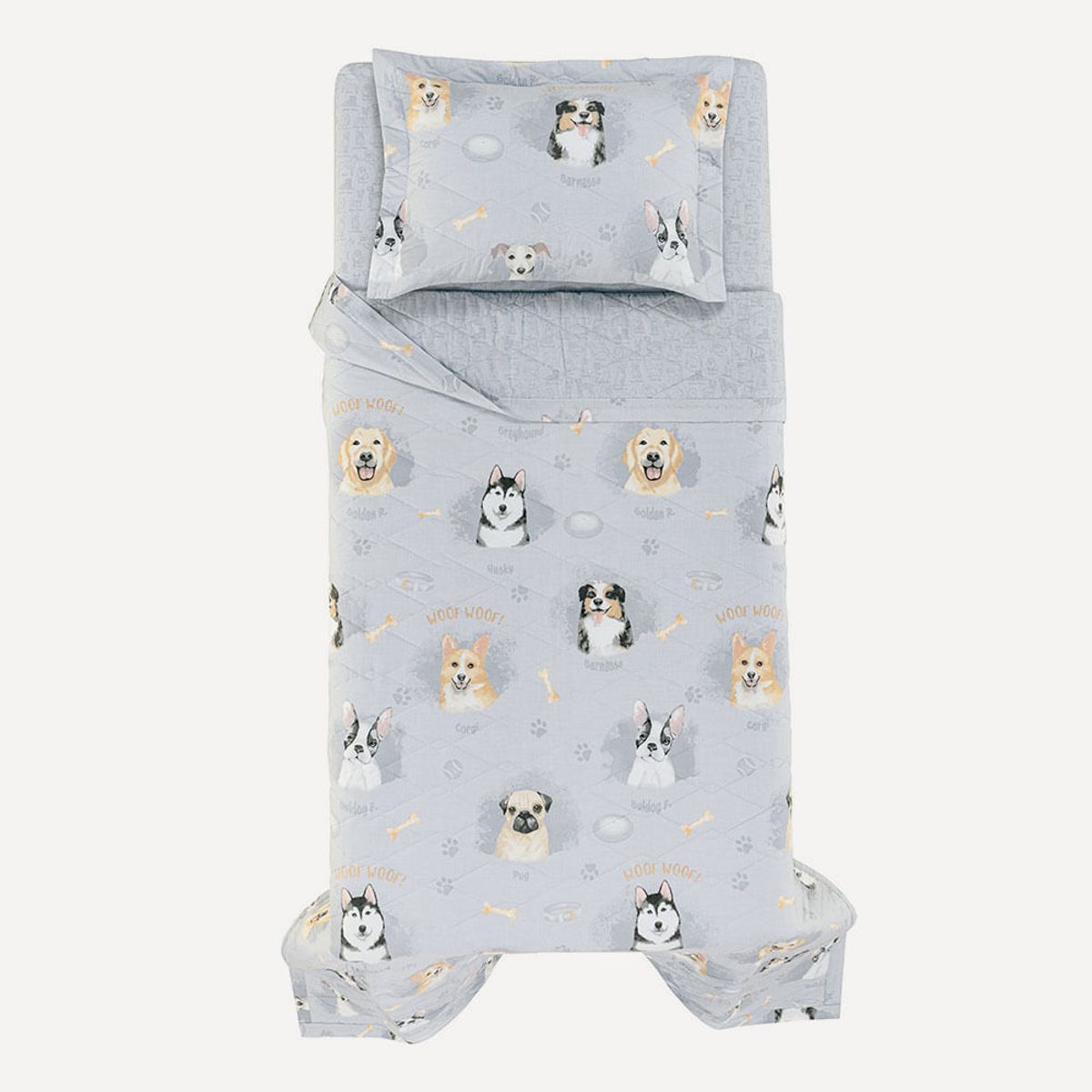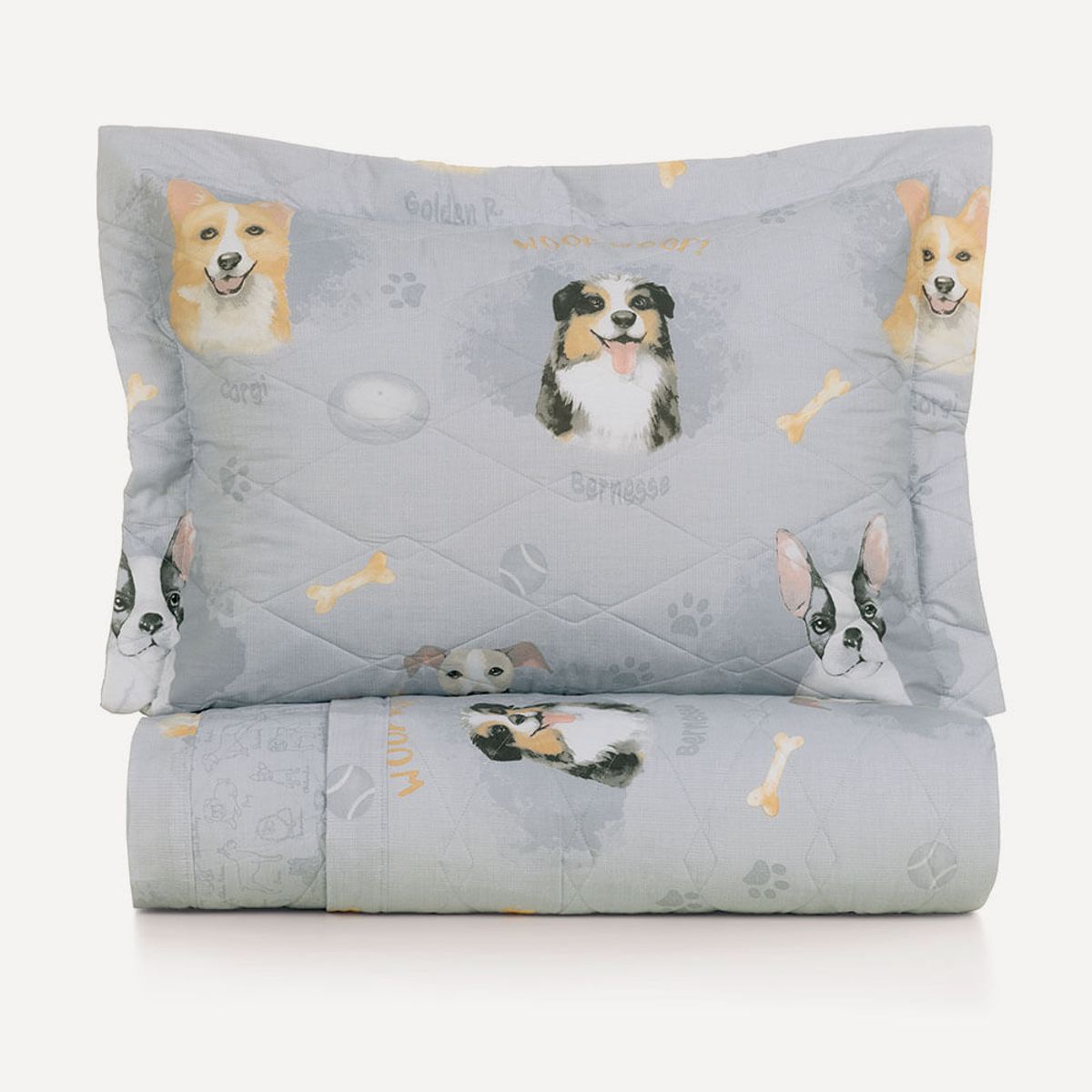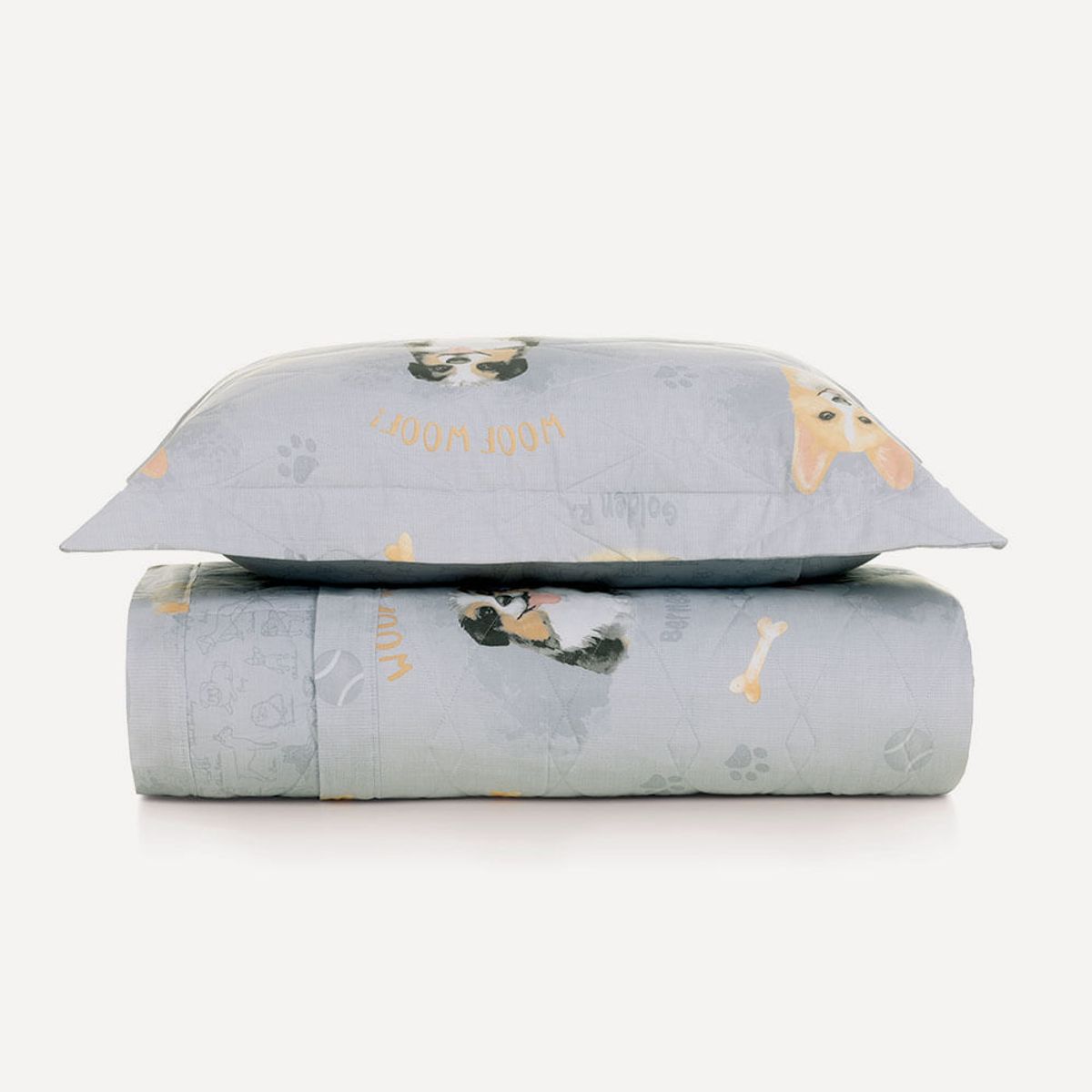 Transforme o quarto das crianças com o Jogo de Colcha Infantil Dog, que alia conforto e diversão. Feito em 100% algodão 200 fios, é encorpado, altamente respirável, antipilling e hipoalergênico, perfeito para noites tranquilas. Com medidas 1,80m x 2,50m, a colcha dupla face apresenta cantos quadrados e estampa cinza com cachorrinhos, enquanto o porta-travesseiro 50cm x 70cm possui três abas de 5 cm, complementando o visual com elegância e praticidade. Combine com outros itens da linha para criar um espaço infantil acolhedor e cheio de personalidade.