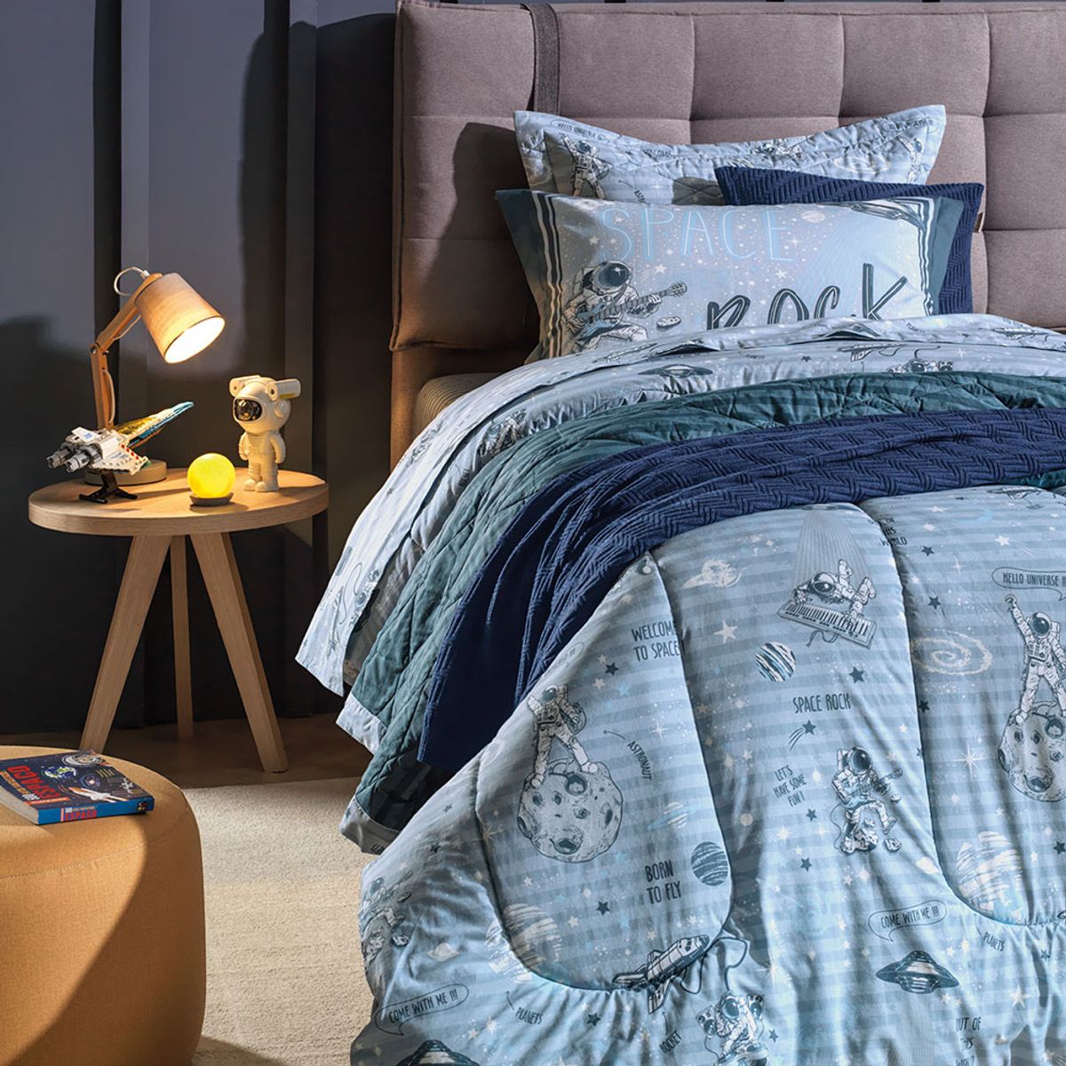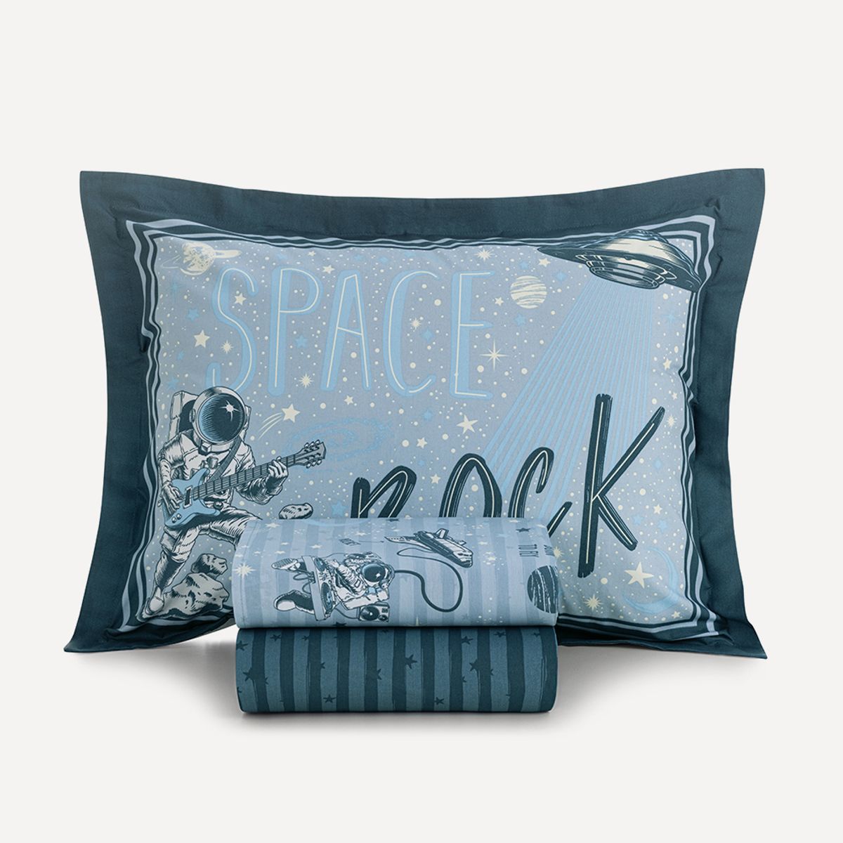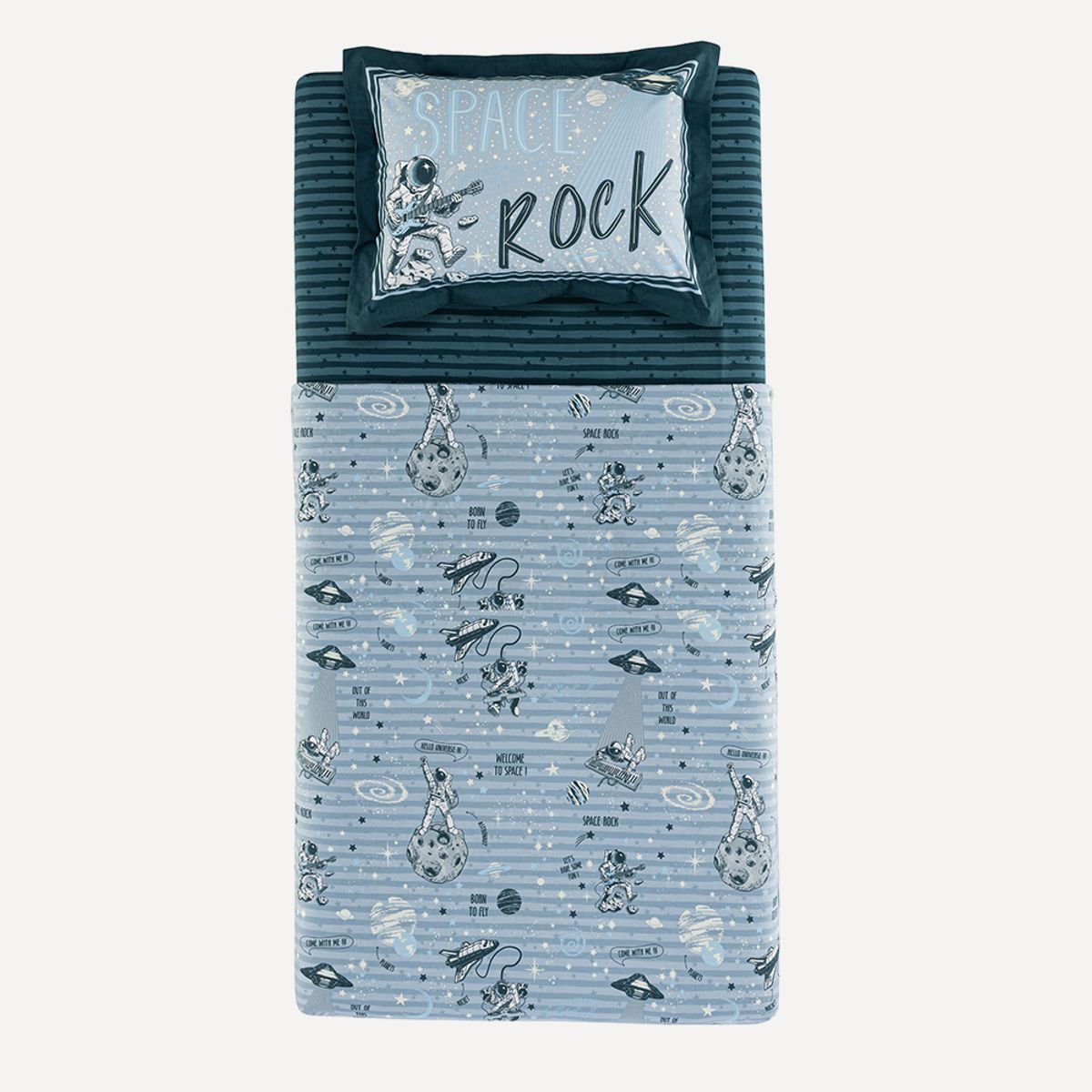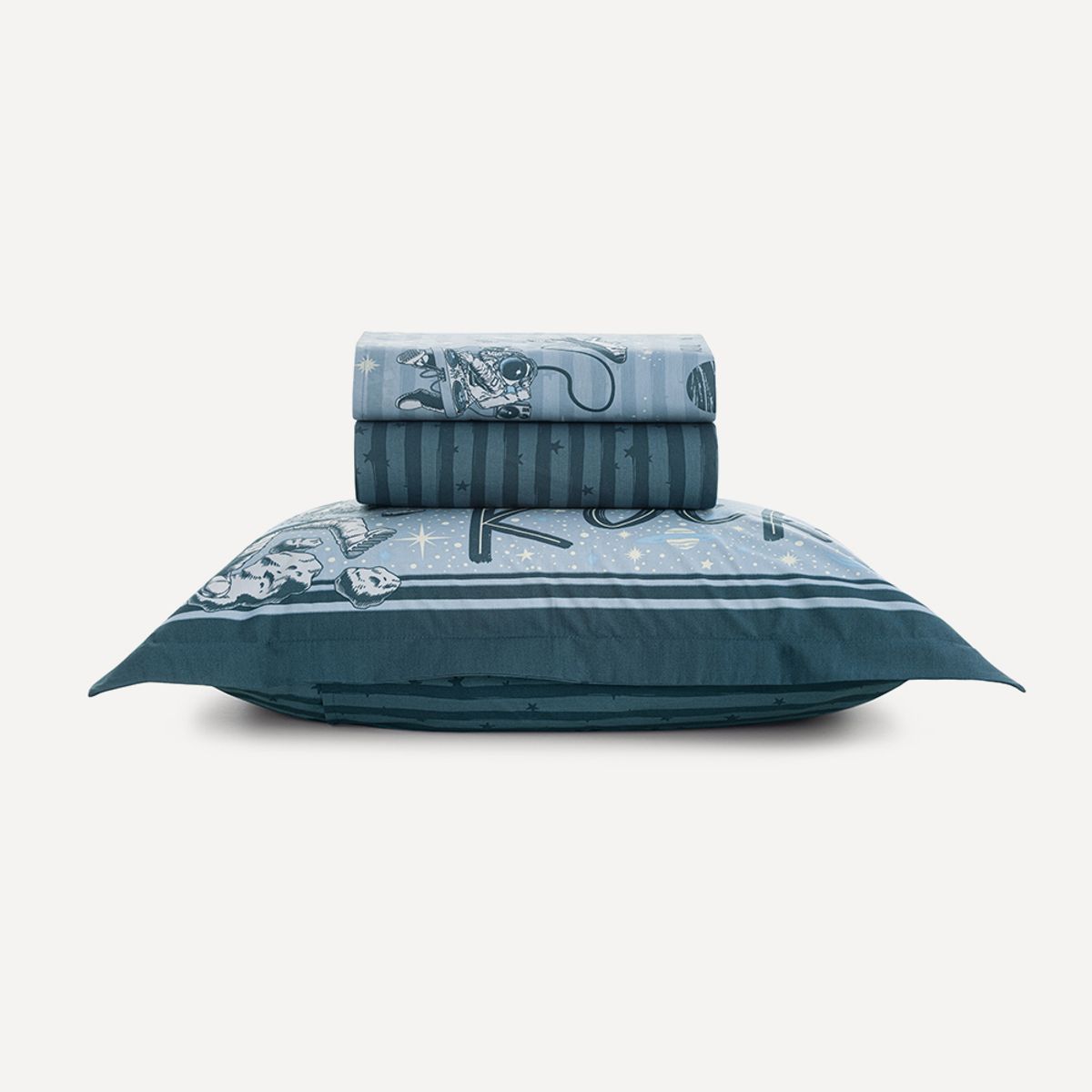 Jogo de cama Infantil Solteiro 200 Fios 100% Algodão Espacial