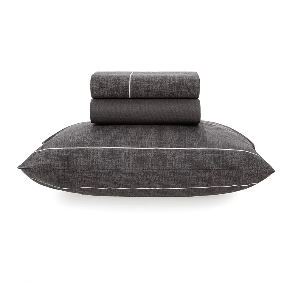 O Jogo de Cama Solteiro Karsten Vicente traz modernidade ao ambiente, com um tom grafite combinado com linhas brancas. Confeccionado em tecido 100% algodão 150 fios, confere um toque super macio e muito aconchego para noites de sono mais proveitosas.