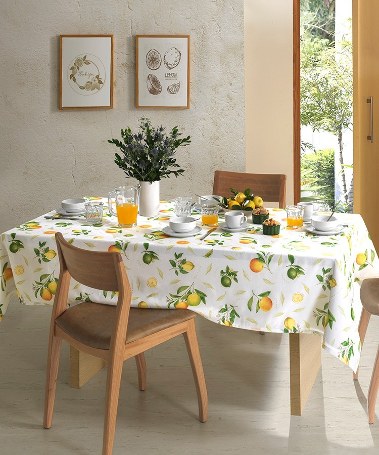 A Toalha de Mesa Retangular Dohler Clean Isa mede 1,40m X 1,40m e é ideal para mesas quadradas de 4 lugares. Em sua estampa contém limões e laranjas com fundo branco que transmitem frescor ao ambiente e são facilmente encaixadas na decoração, deixando sua mesa posta ainda mais sofisticada. Confeccionada em 50% Algodão 50% Poliéster, esta linha conta com a tecnologia Dohler Clean, uma proteção especial contra manchas, que limpa facilmente passando apenas um pano (o causador da mancha deve ser removido prontamente). Essa tecnologia facilita muito no dia a dia e consequentemente diminui as lavagens, preservando a toalha de mesa e prolongando sua durabilidade. Com a Toalha de Mesa Quadrada Dohler Clean Isa todas as refeições serão feitas com um toque especial de beleza e praticidade.