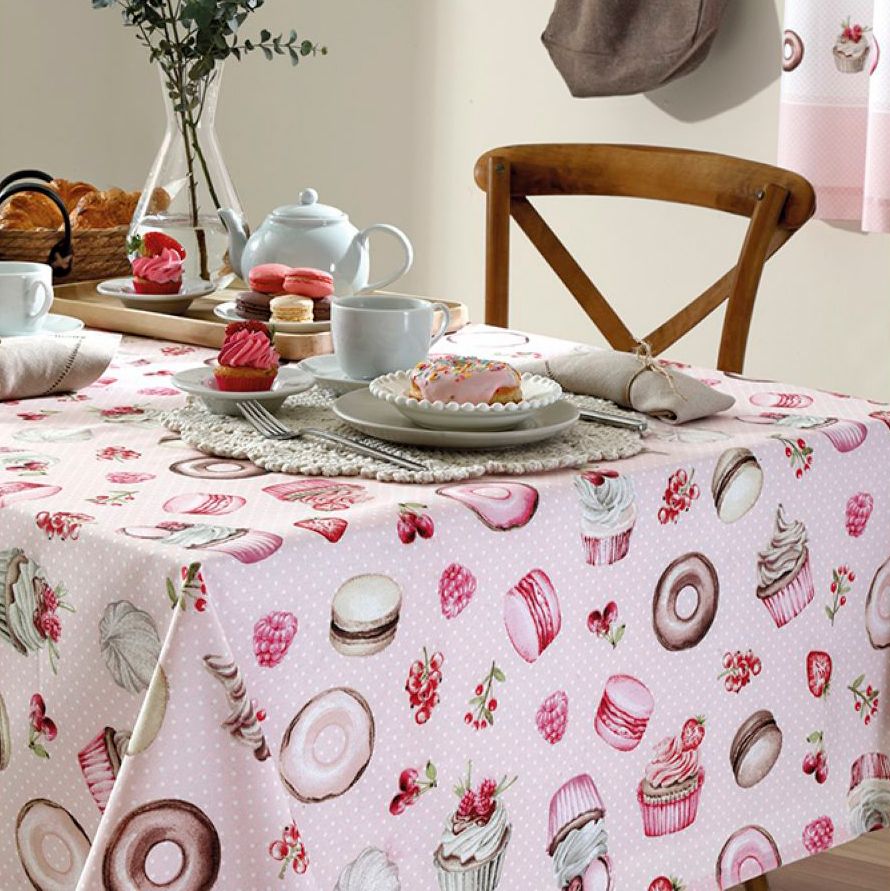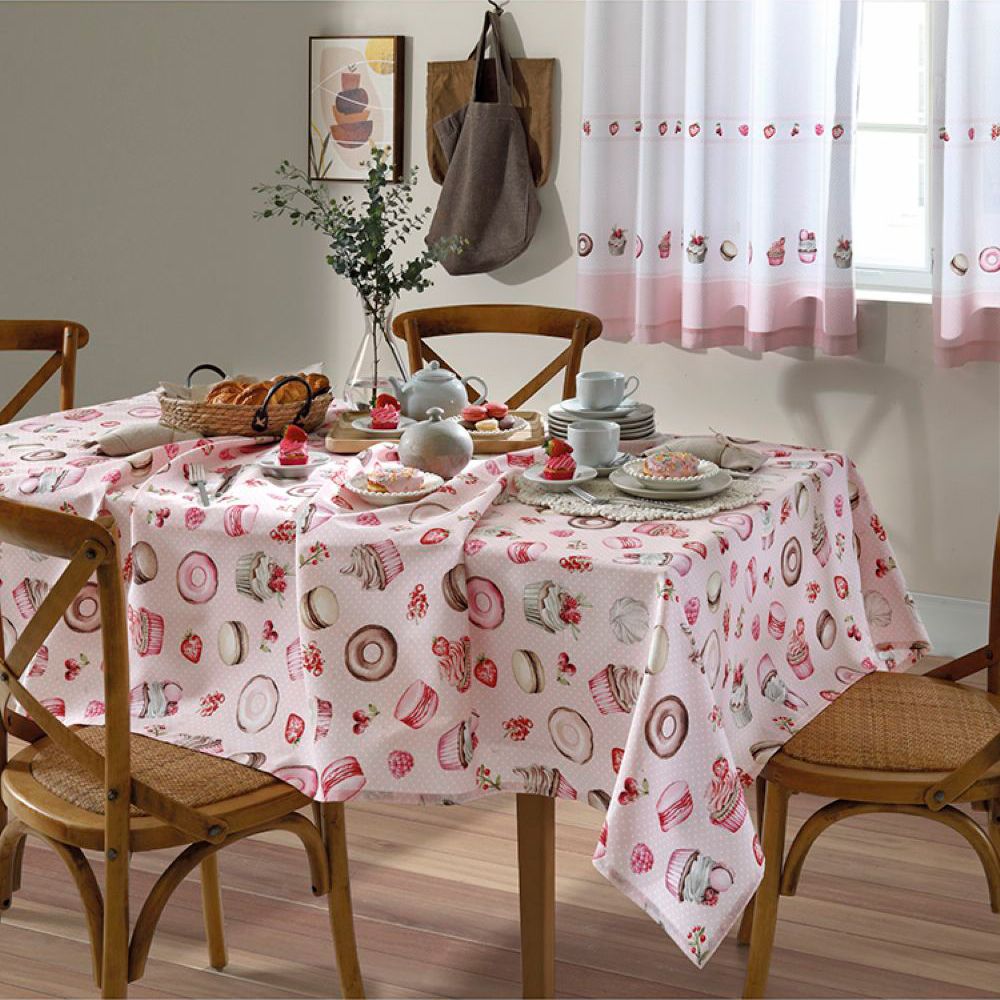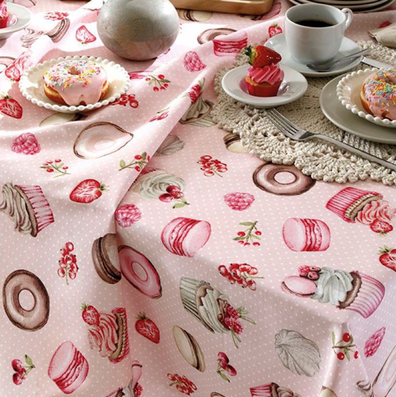 A Toalha de Mesa Retangular Dohler Clean Eva mede 1,40m x 1,40 e é ideal para mesas Retangulares de 6 lugares. Em sua estampa, conta com fundo rosa claro de poá branco e ilustração de doces, cerejas e amoras. Com tons predominantes de rosa, confere delicadeza e graciosidade para sua mesa. Prática e versátil, é perfeita para o dia a dia pois possui acabamento especial Dohler Clean, que protege e permite limpar facilmente, basta passar um pano de imediato. Confeccionada em tecido misto de algodão e poliéster, a Toalha de Mesa Dohler Clean Eva vai levar doçura e encantamento para todas as refeições!